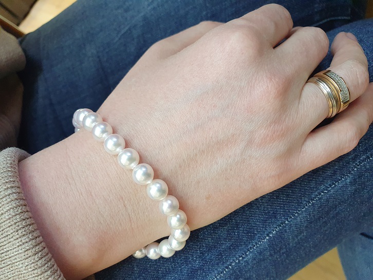 Браслет из белого пресноводного жемчуга, с замком из золота 585˚.