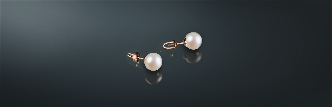 Серьги-пусеты с белым морским жемчугом Акойя, на винтовом замке из золота 585˚.
